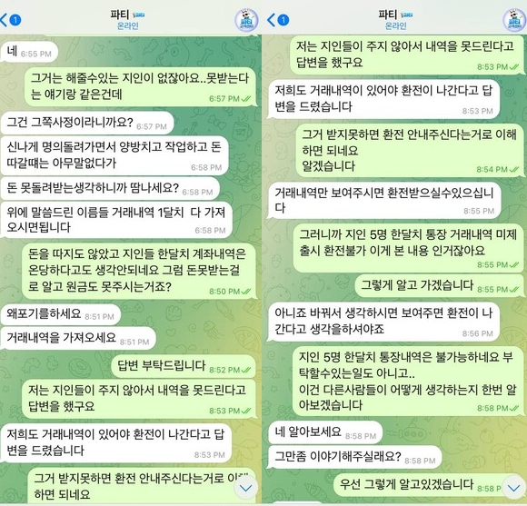 겨우 본전 근처인데... 여러분 파티 조심하세요 환전 누르면 여러분과 거래한 내역이 있는 모든 사람들 계좌는 만천하에 공개해야 됩니다.